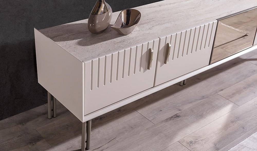 Voel de luxe van natuurlijke steen, zonder het gewicht: French Door Art presenteert een stijlvol meubel met travertijn-look dat direct de sfeer van uw woonkamer verandert. Dit 180 cm brede design combineert tijdloze esthetiek, slimme functionaliteit en zorgeloze onderhoudsarmheid — geleverd in heel Europa en wereldwijd en beschermd door 2 jaar garantie.