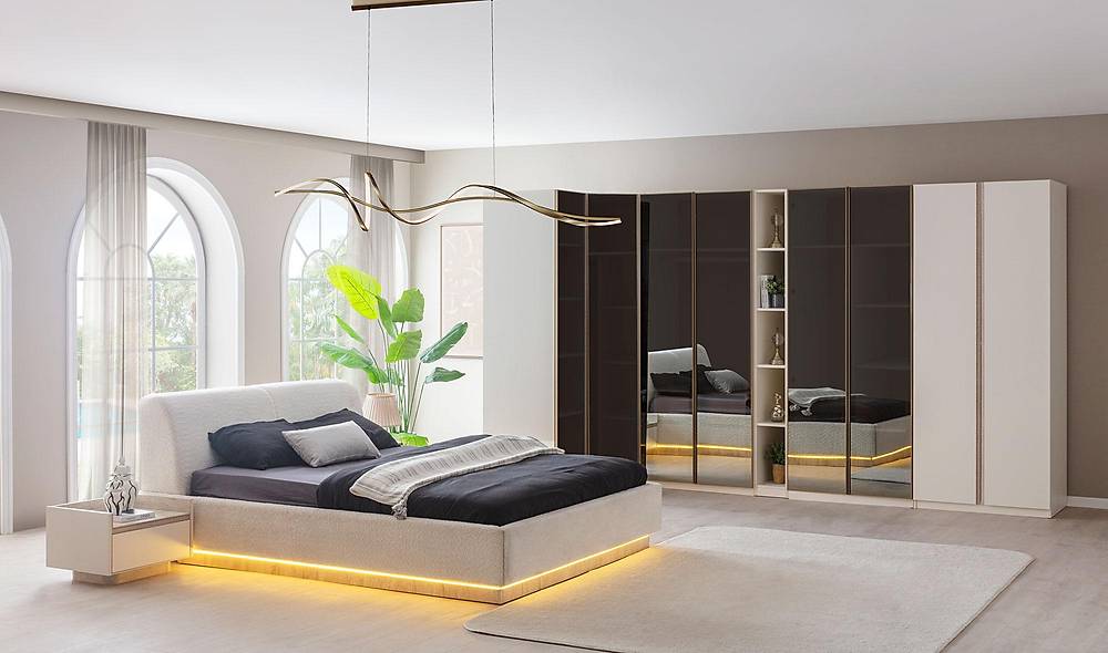 Ontdek direct het beste van French Door Art: een stijlvolle en functionele slaapkameroplossing die design en slimme opbergruimte perfect combineert. Met een travertin-look, reflecterende glasaccenten en duurzame materialen verandert deze set jouw slaapkamer in een rustige, luxueuze retraite — mét zekerheid dankzij een 2 jaar garantie en productie volgens de Europese TÜV ISO 9001 kwaliteitsnorm.
