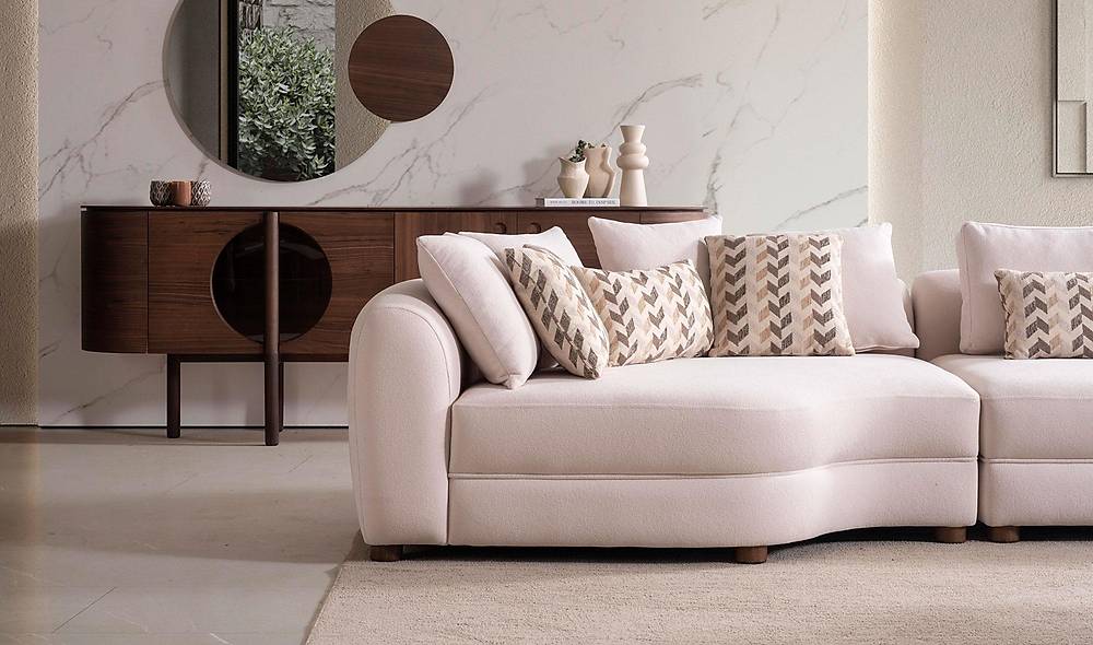 - Stof met karakter: de bekleding van geweven stof geeft tactiele diepte en een stijlvolle uitstraling die zowel modern als huiselijk oogt.