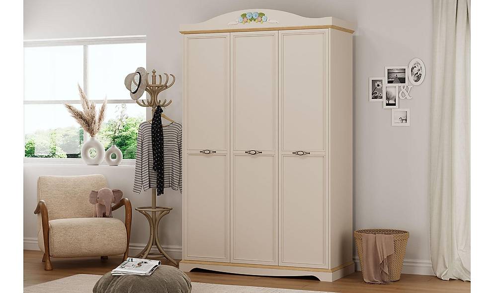 - Kastkenmerken: 3-deurs kast met ingebouwde lades