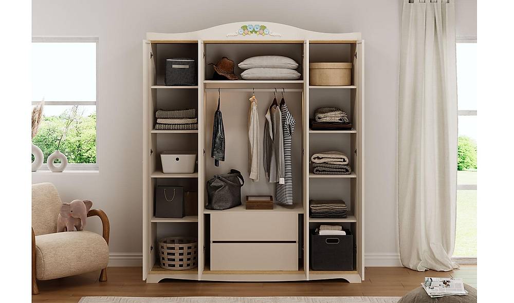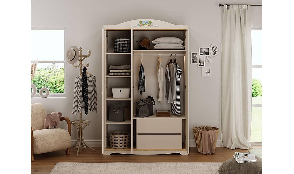 - Maximale opbergruimte: een 3-deurs kast met hanggedeelte, planken en meerdere lades geeft overzicht en zorgt dat kleding en spullen netjes opgeborgen zijn.
