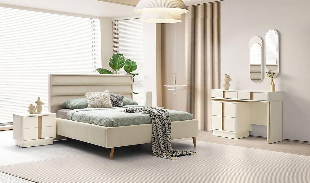 - Stijlvolle uitstraling: zachte crème kleur en duurzame geweven stof op het hoofdbord voor een luxe, uitnodigende sfeer.