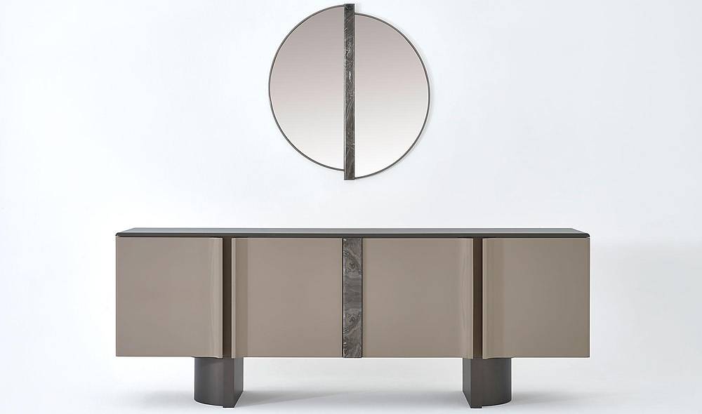 Complete eettafelset met console, spiegel, eettafel en zes stoelen, ideaal voor stijlvolle eetkamers. Perfecte keuze voor wie luxe uitstraling zoekt gecombineerd met duurzame materialen en echte marmeren accenten.