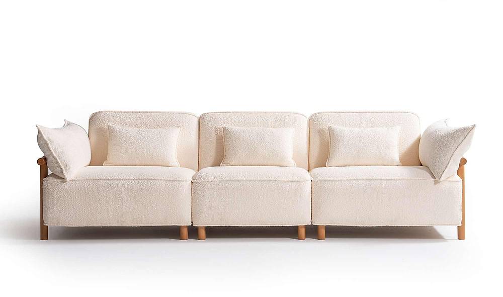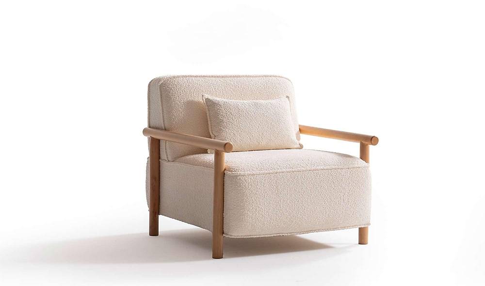 French Door Art bankstel (twee sofa's + bergère) — compact, stijlvol zitmeubel met zachte bouclé-bekleding. Kies het voor een duurzaam beukenhouten skelet en verwisselbare stoffen waarmee u uw interieur makkelijk verfrist.