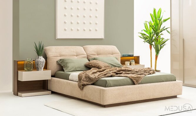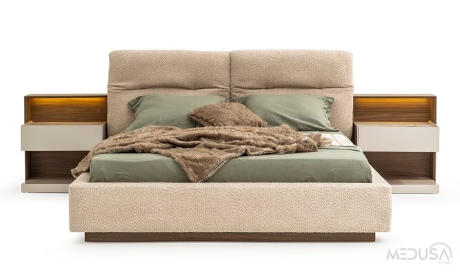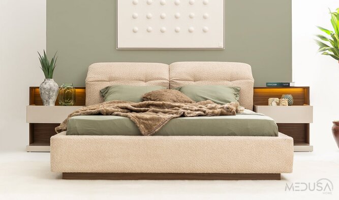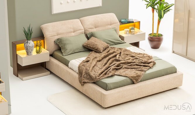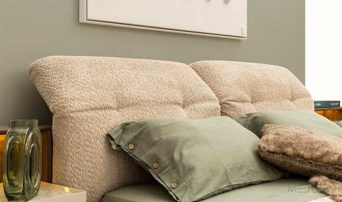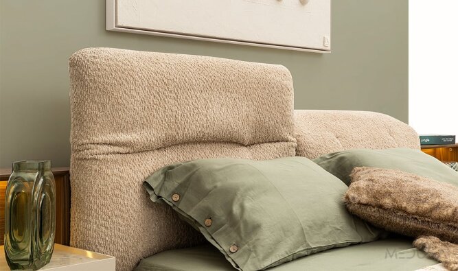 - Premium bekleding: zowel het hoofdeinde als het bedframe zijn vervaardigd met eersteklas stof. Deze stoffering geeft een warme, luxueuze uitstraling en voelt aangenaam aan.