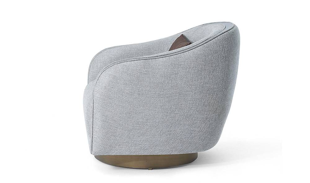 Deze luxe draaifauteuil is een elegante berjer met stevige ondersteuning en aanpasbare stofkleur. Ideaal voor wie comfort, hoogwaardige materialen en stijlvolle flexibiliteit wil combineren.