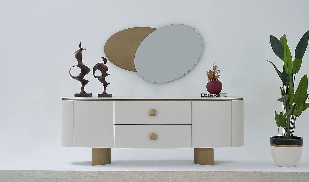 - Praktische opslag: console met twee deuren en lade(s) plus spiegel creëert extra opbergruimte en een stijlvolle blikvanger in de kamer. De deuren zijn voorzien van een stopmechanisme voor soepel en veilig gebruik.