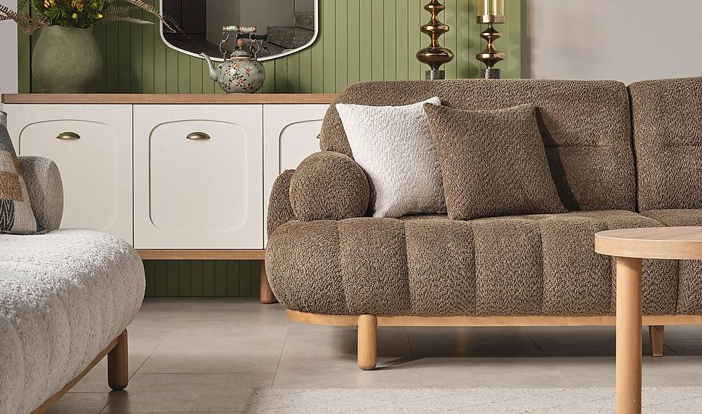 - Duurzame basis: een houten frame (gürgen/beuken) en massief houten poten zorgen voor stabiele ondersteuning en een warme, natuurlijke uitstraling.