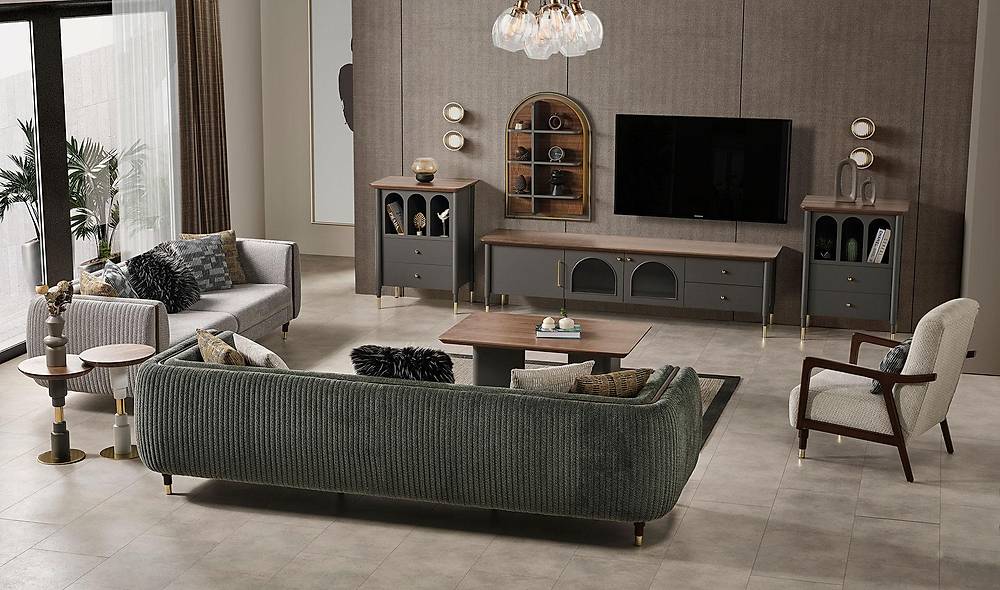 - De bijpassende salontafel (sehpa) is beschikbaar als optionele accessoire en is niet standaard bij de prijs inbegrepen — zo kunt u uw inrichting naar wens uitbreiden zonder concessies te doen aan stijl.