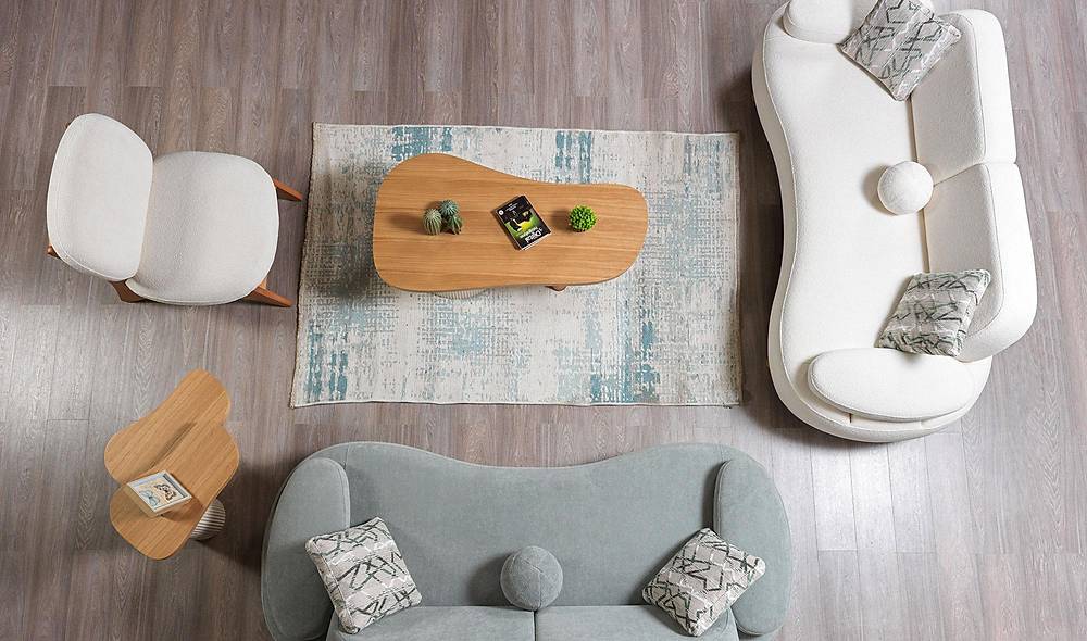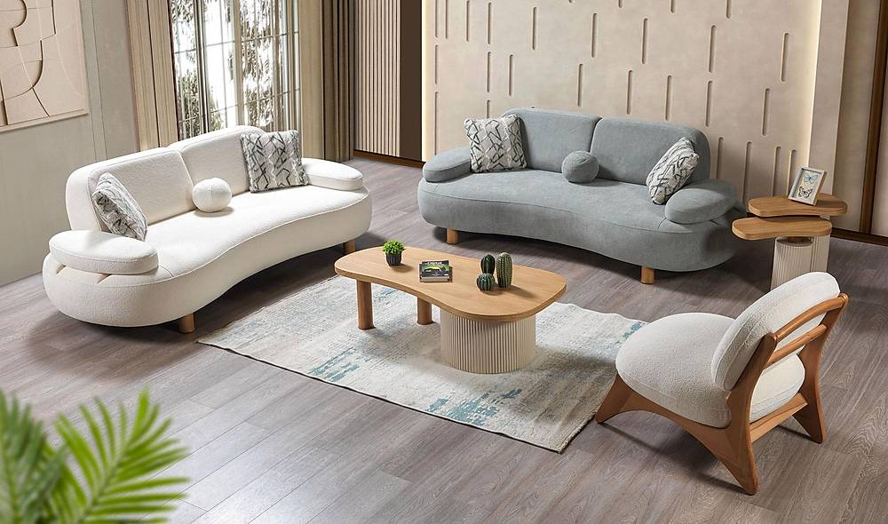 - Complete set: geleverd als 2-zitsbank plus 1 fauteuil (tafels en poefs niet inbegrepen).