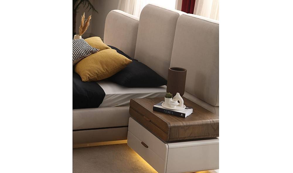 - Maximale opbergruimte: het bazalı karyola-ontwerp biedt een ruime, gemakkelijk toegankelijke opslag onder het matras — ideaal om seizoenskleding, beddengoed of koffers netjes en uit het zicht te bewaren.