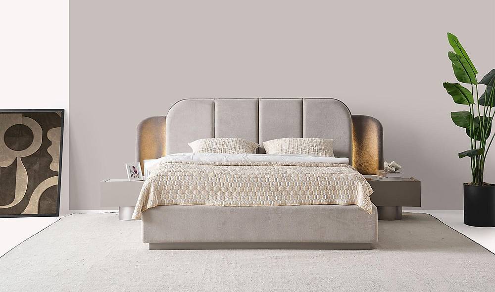 - Hoogwaardig en uitnodigend comfort: het hoofdbord is bekleed met zachte, getextureerde breistof die zowel warm als stijlvol aanvoelt.