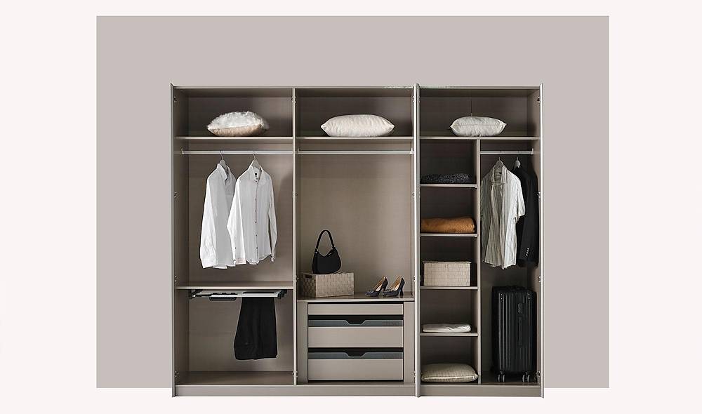 - Compleet ingebouwde opbergoplossing: een geïntegreerde kast met hanggedeelte, planken, lades, een speciale broekhouder en sfeervolle LED-verlichting maakt aankleden en organiseren eenvoudiger en aangenamer.