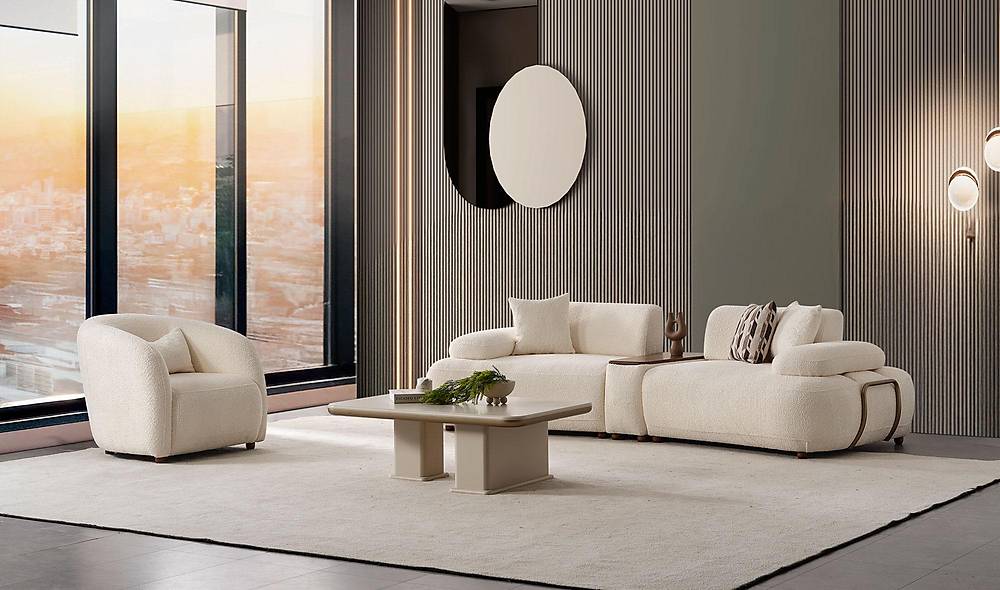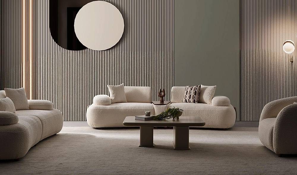 - Houd rekening met de afmetingen van je ruimte en de opstelling — de set is ontworpen om zowel open ruimtes als compacte woonkamers te verrijken.