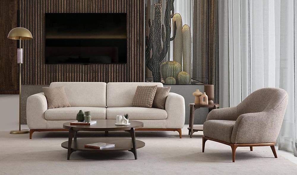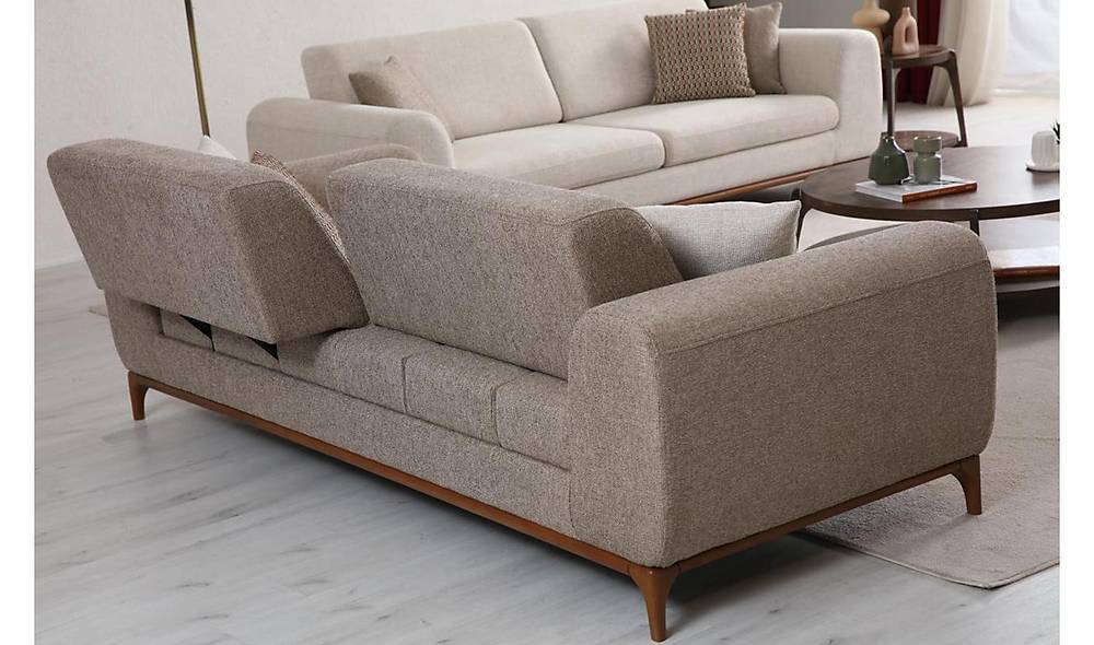 Deze comfortabele woonkamer set bevat twee banken en één fauteuil met geïntegreerde slaapfunctie. Ideaal voor wie veelzijdigheid en aanpasbaar comfort waardeert.