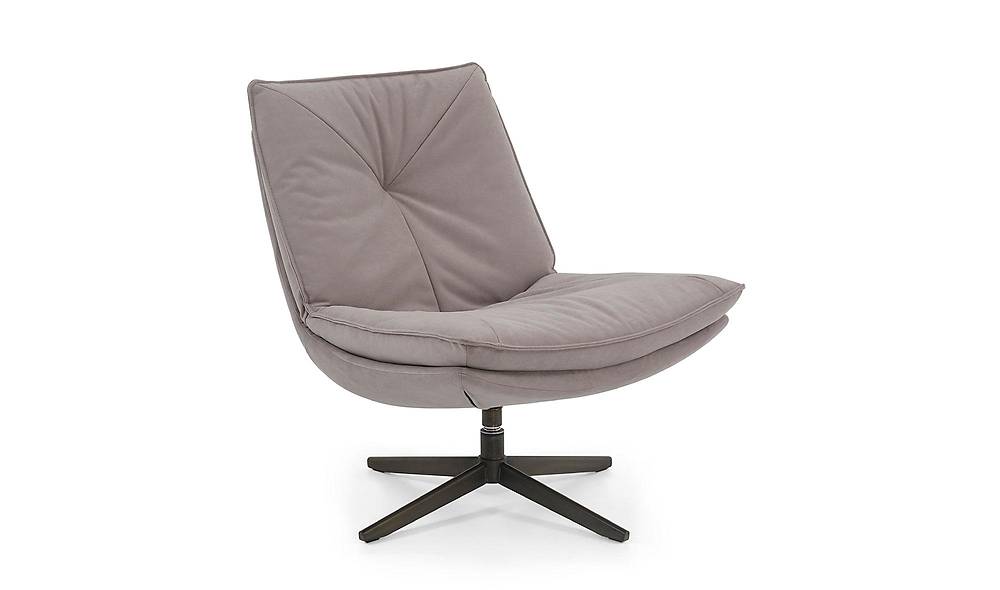 Design met slimme detailsDe draaifauteuil voegt functionaliteit toe: draai gemakkelijk van gesprekspartner naar uitzicht of televisie zonder op te staan. De metalen poten met houten fineer zorgen voor een moderne, verfijnde look en stevige ondersteuning. Omdat het ontwerp geen bedfunctie bevat, blijft de zit- en rugconstructie optimaal gericht op comfort en duurzaamheid.