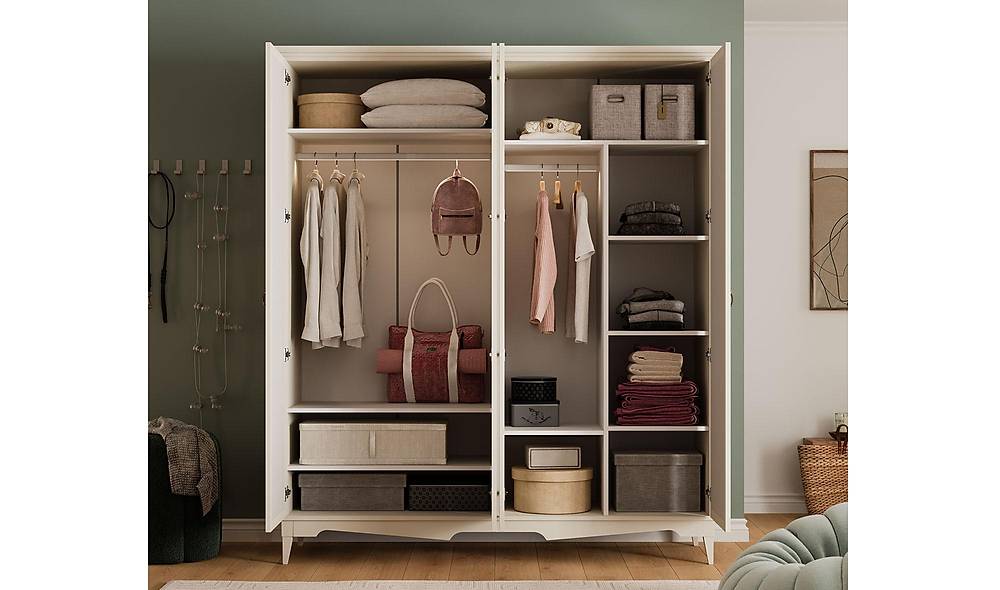 - Compleet geïntegreerde opbergoplossing: de kast heeft zowel een hanggedeelte als planken en lades, waardoor kleding, beddengoed en persoonlijke spullen netjes en binnen handbereik opgeborgen kunnen worden.
