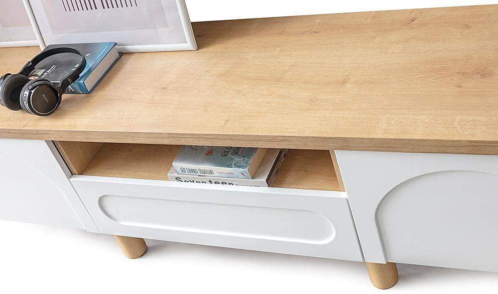 - Hoogwaardige materialen: MDF-front met verflaag en een binnenkern van spaanplaat zorgt voor een fraaie, egale afwerking; massief houten poten bieden stabiliteit en een warme uitstraling. Stoelen hebben een beukenhouten (gürgen) frame en een comfortabele linnen bekleding.