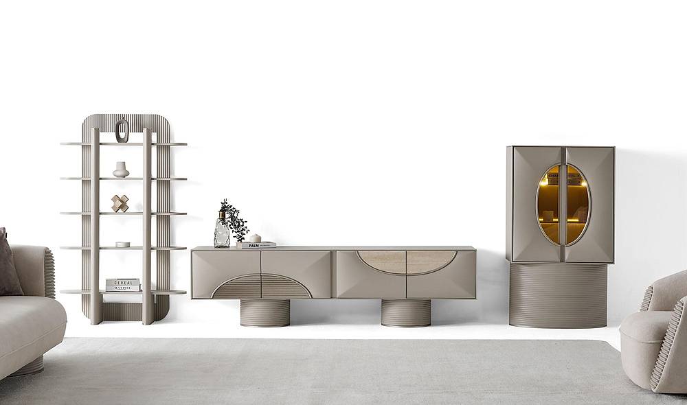 De French Door Art woonwand van 380 cm is een stijlvolle, functionele oplossing voor uw woonkamer. Kies deze set voor natuurlijke keramiekaccenten en robuuste materialen die luxe uitstraling met eenvoudig onderhoud combineren.