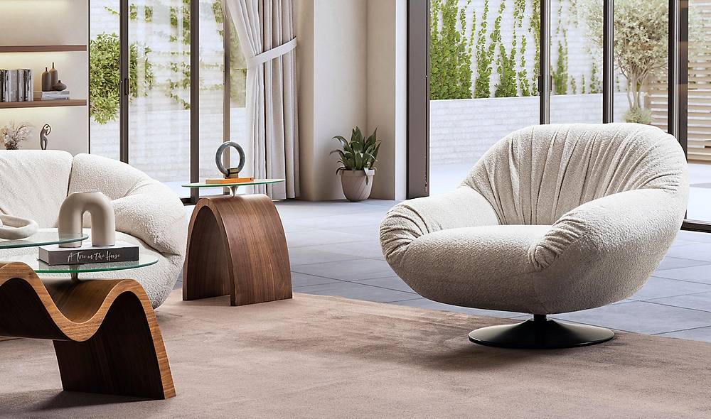 De French Door Art draaibare berjer is een moderne, comfortabele fauteuil met stille draaivoet. Ideaal voor wie stijl en blijvend zitcomfort zoekt dankzij ademende, aanpasbare stof en 35 HR hoogveerkrachtig schuim.