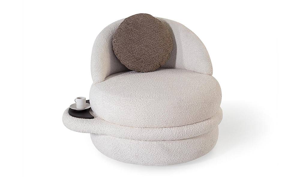 - Een moderne eyecatcher: de bouclé-stof geeft textuur en warme elegantie, perfect voor zowel minimalistische als gezellige interieurs.