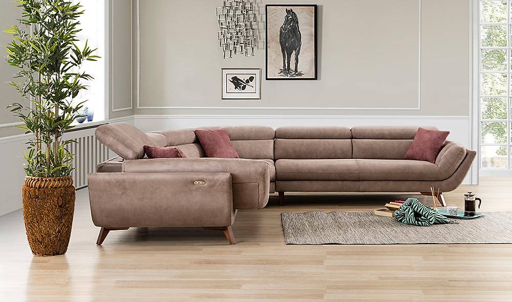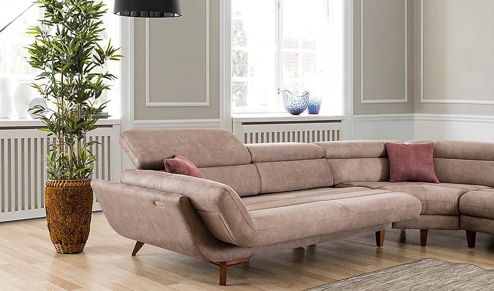 Luxe motorische hoekbank Mikanos – beige, elektrisch verstelbaar
