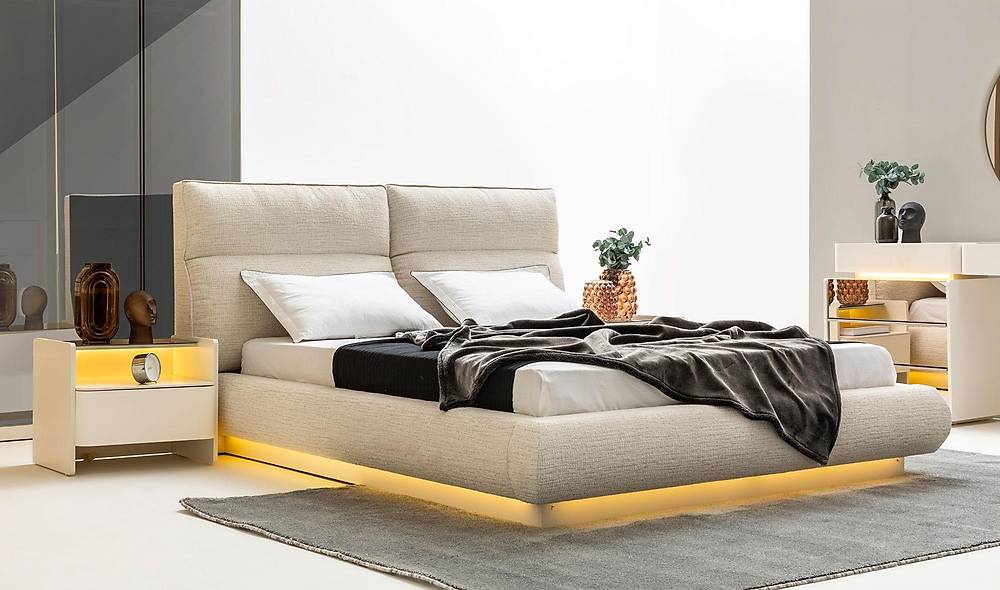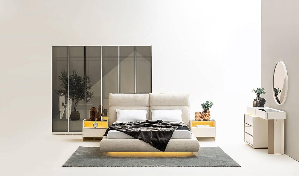 Ontdek de perfecte combinatie van stijl, comfort en slimme opbergruimte: de French Door Art multifunctionele bedkast met geïntegreerde LED‑verlichting en reflecterend glas — ontworpen om jouw slaapkamer rust, luxe en ordening te geven.