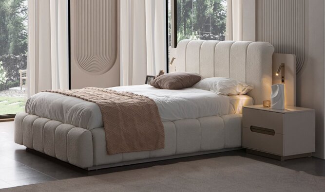 - Luxe bekleding: zowel hoofdbord als bedframe zijn gestoffeerd met eersteklas stof voor een zachte, verfijnde uitstraling en duurzaam gebruik.