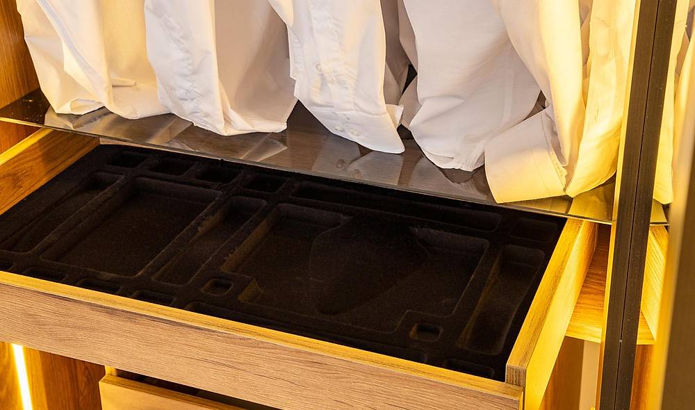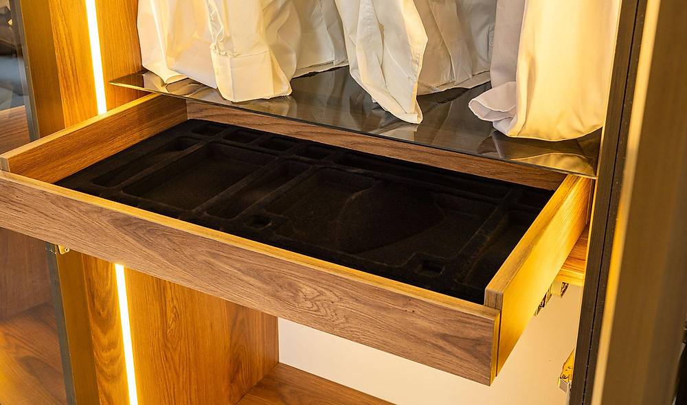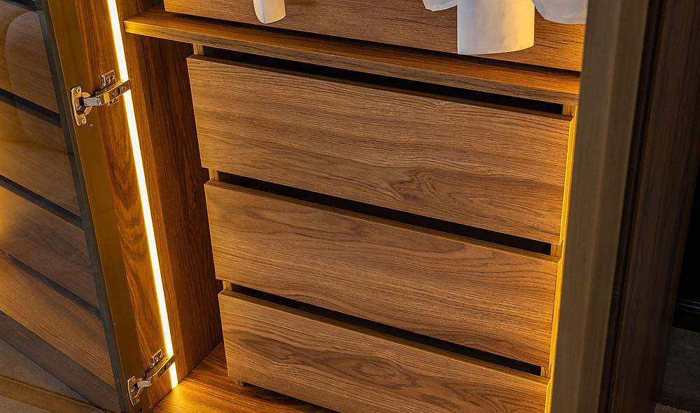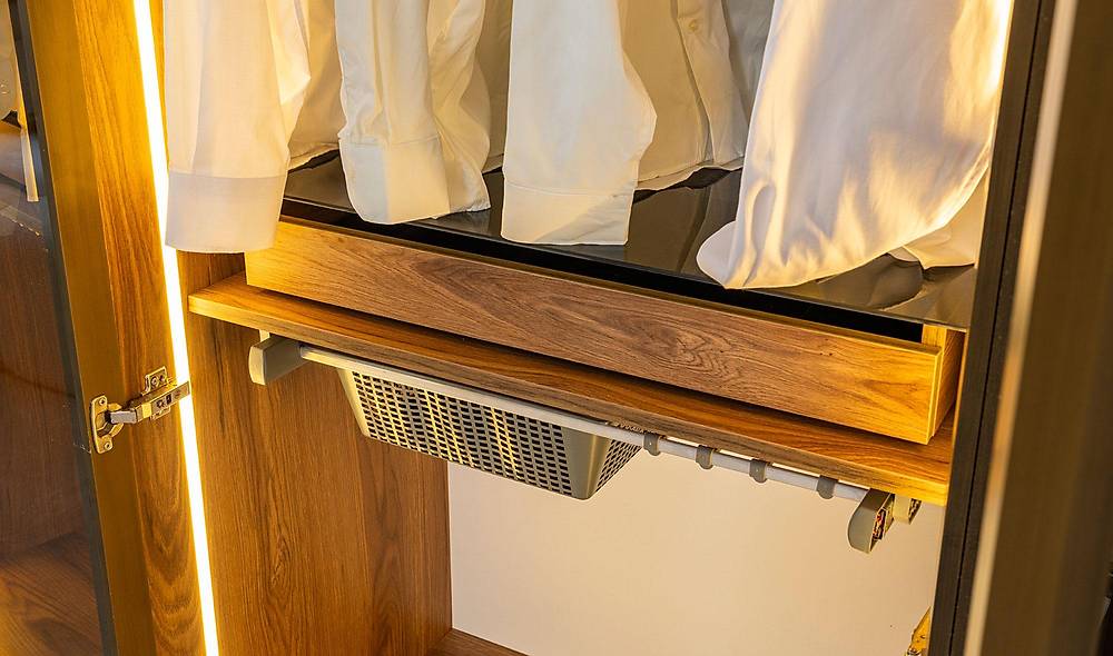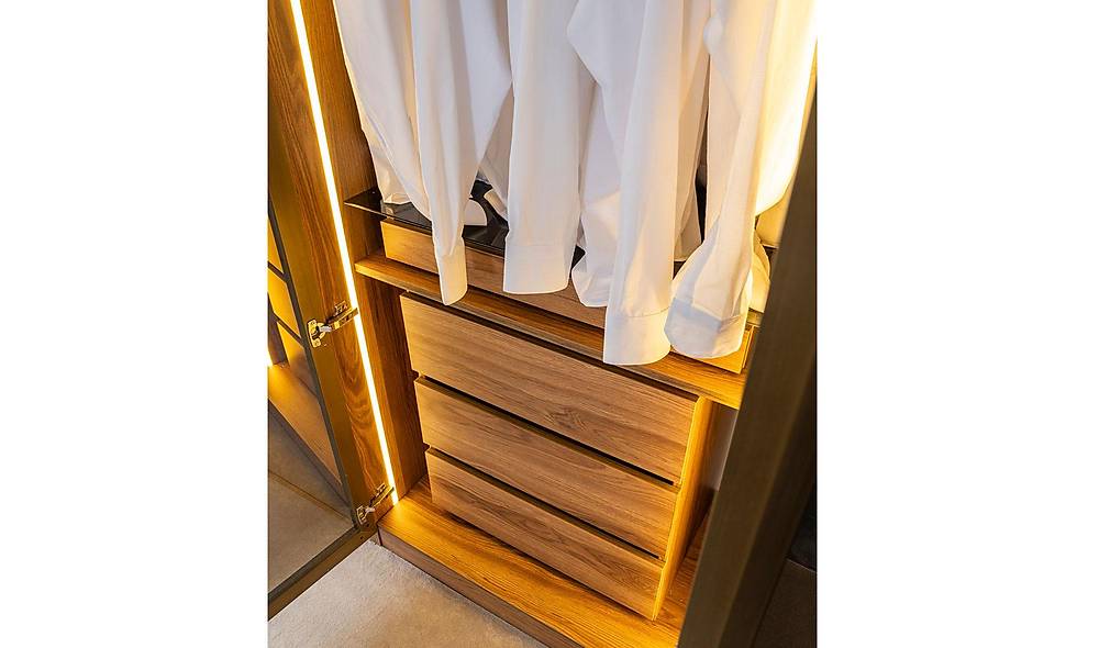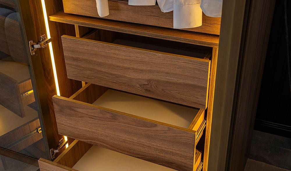 - Gebruiksgemak dat je dagelijks merkt: stoppers, lades en LED-verlichting maken aankleden en organiseren eenvoudig en plezierig.