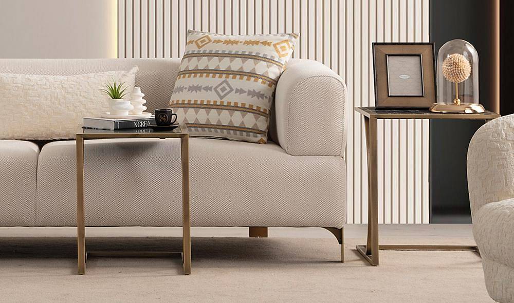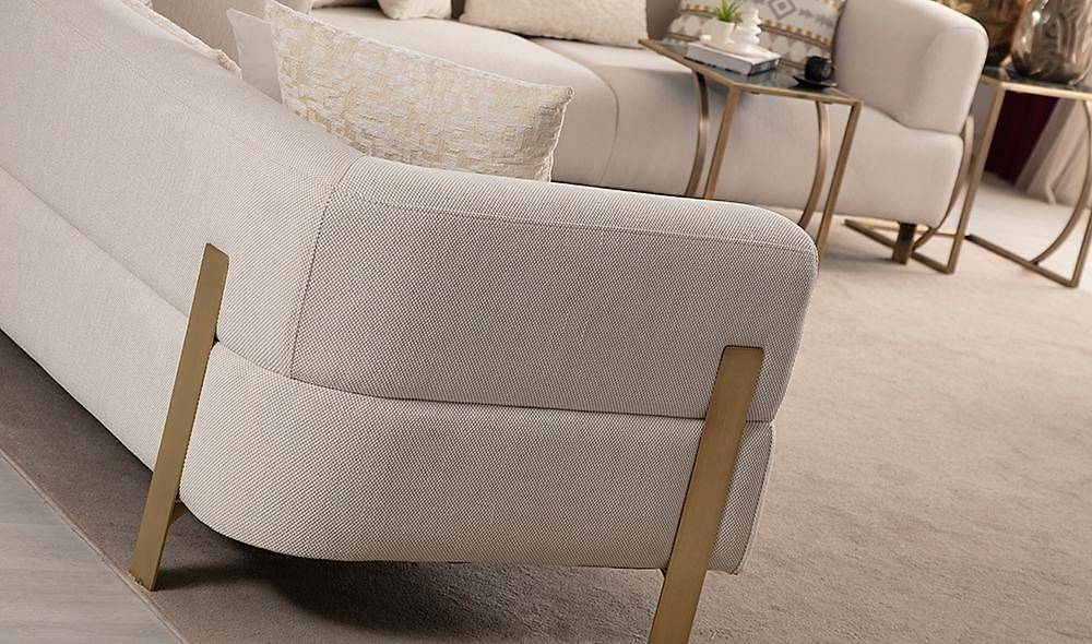 - Duurzaam gebouwd: een stevig skelet van beukenhout (gürgen) en metalen poten zorgen voor stabiliteit en een moderne look die lang meegaat.