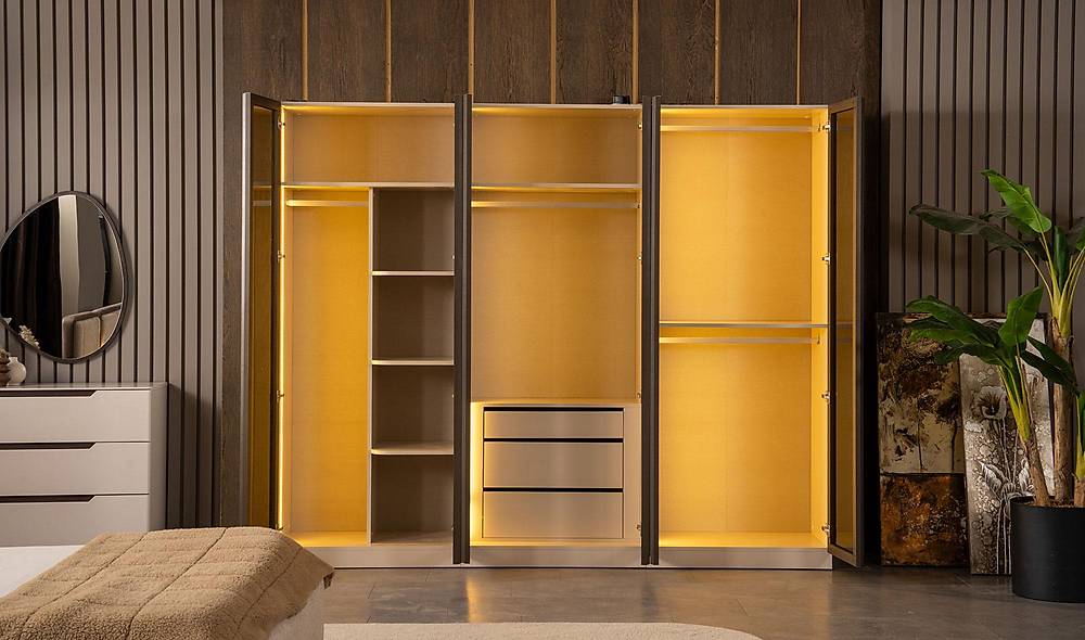 Wat je voelt en ervaartStel je voor: een opgeruimde slaapkamer met zachte, neutrale tinten die rust uitstralen. Het gebreide hoofddeksel nodigt uit tot ontspannen achterover leunen bij het lezen, terwijl de doordachte indeling van kast en lades zorgt dat alles een vaste plek heeft. Elke ochtend stap je uit bed in een rustige, georganiseerde ruimte — minder stress, meer focus op de dingen die echt tellen.
