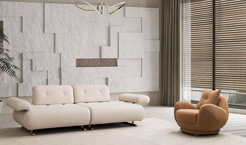 - Multifunctioneel ontwerp: naast royale zitplaatsen beschikt het model over een geïntegreerde slaapfunctie met arm- en rugmechaniek — ideaal voor onverwachte gasten of een ontspannen avond uitgestrekt op de bank.