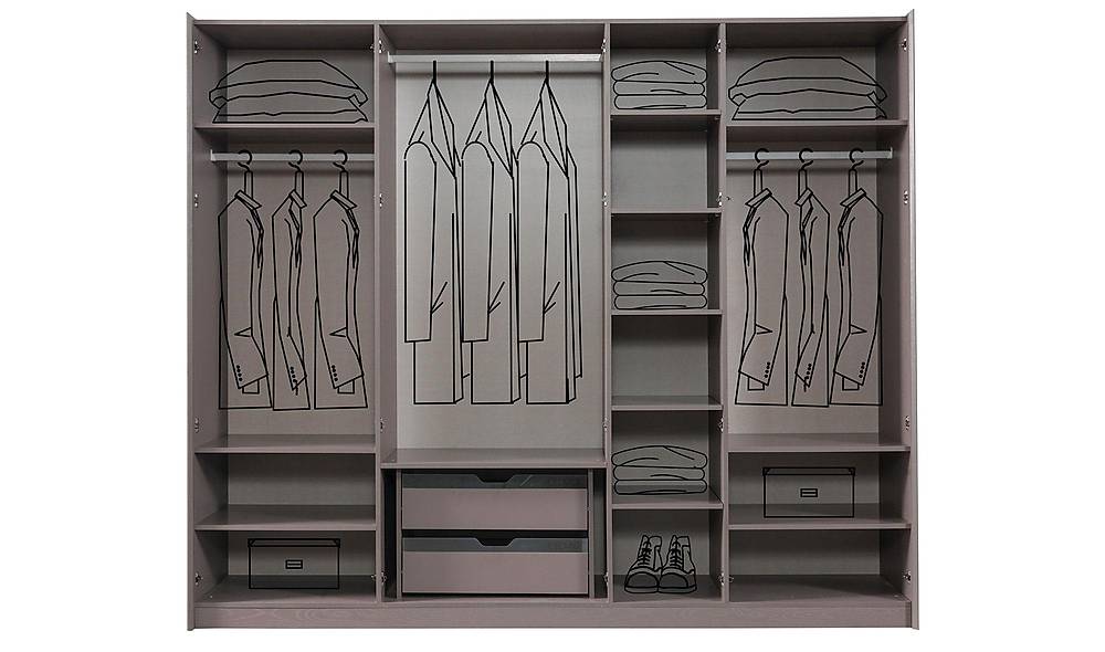 - De kast/bergfunctie bevat praktische indelingen met hanggedeelte, planken en laden — overzicht en structuur binnen handbereik.