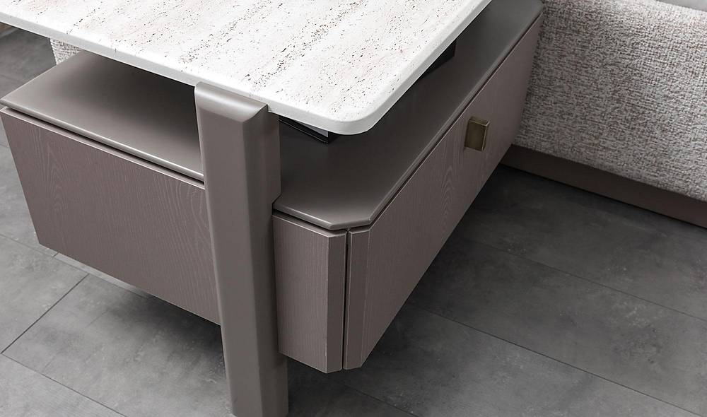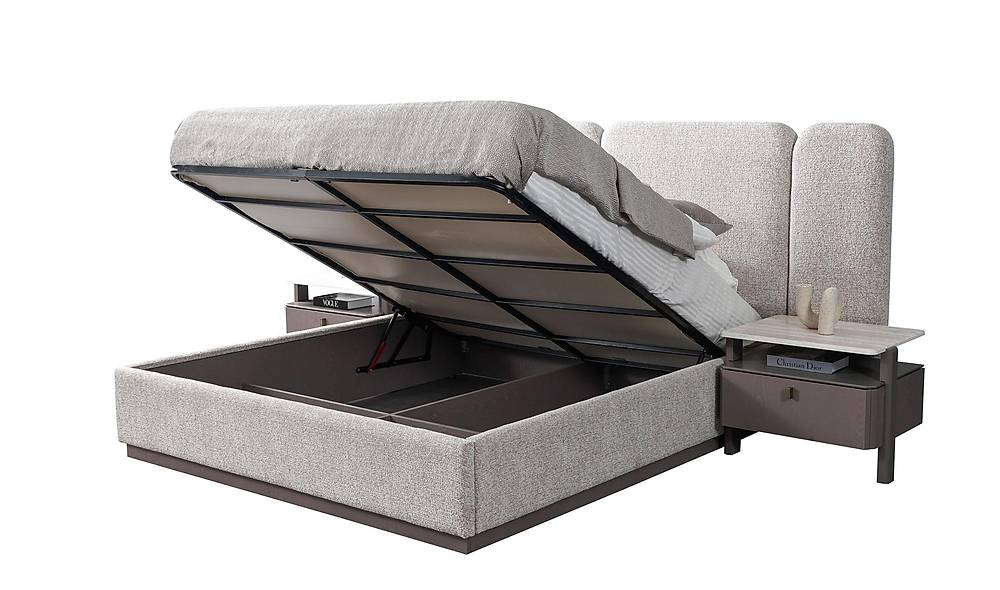 Emotionele aantrekkingskrachtStel je voor: een slaapkamer zonder rommel, waar alles een vaste plek heeft en waar je bij thuiskomst meteen tot rust komt. Dit bed helpt die droom werkelijkheid te maken. De zachte hoofdsteun nodigt uit tot ontspannen lezen of samen koffiedrinken in bed, terwijl de opbergruimte zorgt dat je kamer altijd netjes oogt. De marmeraccenten geven een subtiele luxe, waardoor elke ochtend en avond een kleine verwennerij wordt.