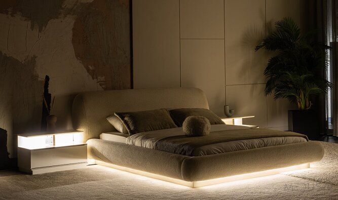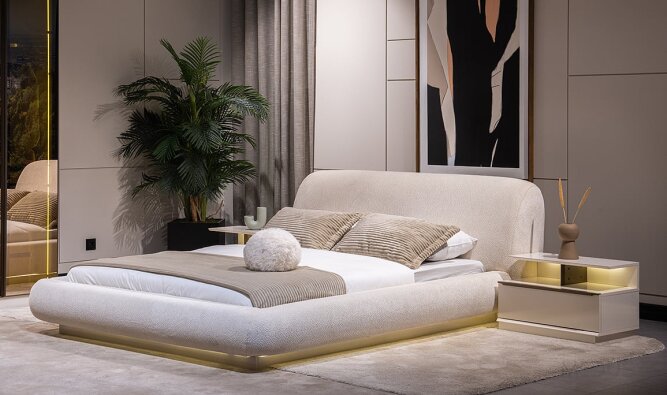| Karyola (bedframe) | Bekleed met 1e klas stof |