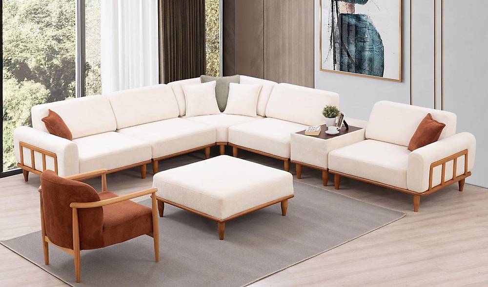 - Volledig aanpasbaar: kies uit verschillende kleuren (kleurveranderbare stofopties) en module-combinaties — van compacte hoekopstellingen tot royale zithoeken op maat gemaakt voor jouw ruimte.