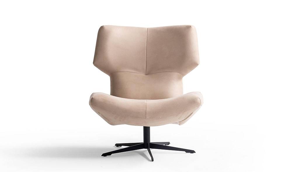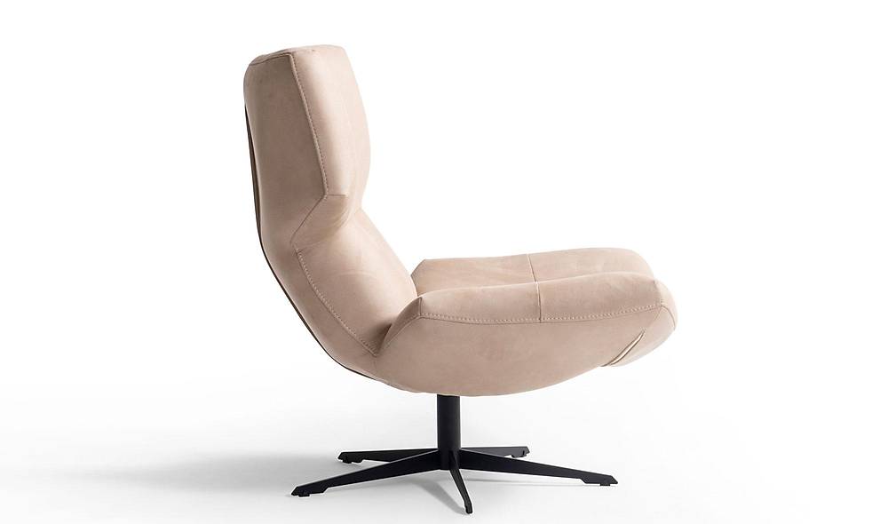 Moderne draaifauteuil met nubuck-bekleding en middelharde zitting. Perfect voor wie comfort en aanpasbare stijl zoekt.