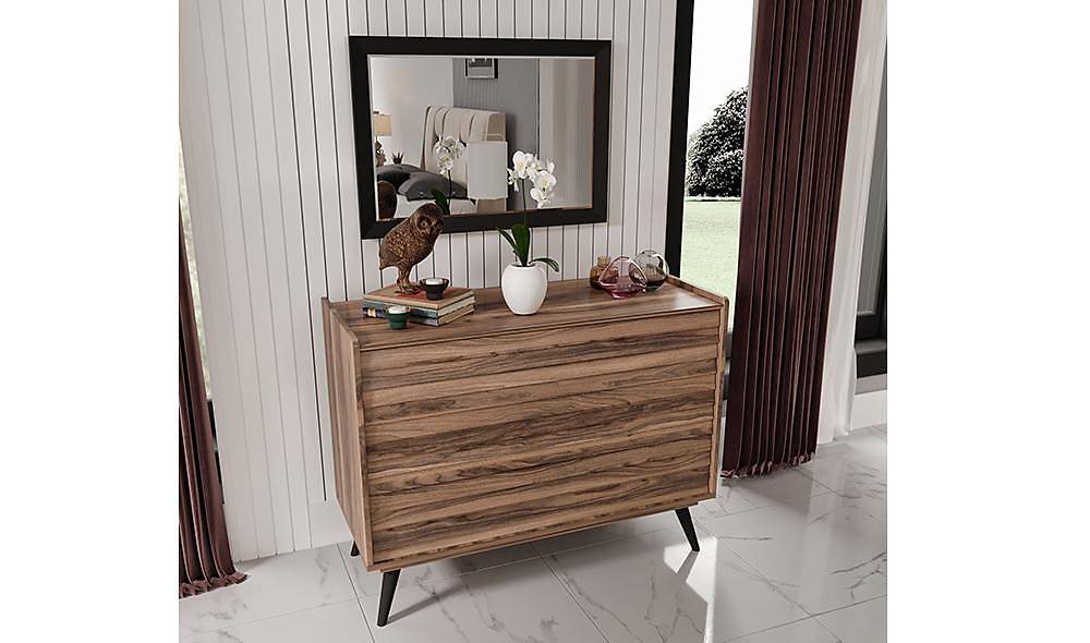 - Hoogwaardige materiaalkeuze en afwerking in walnootkleur