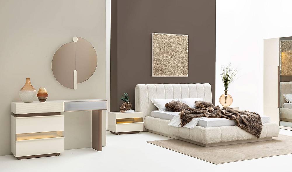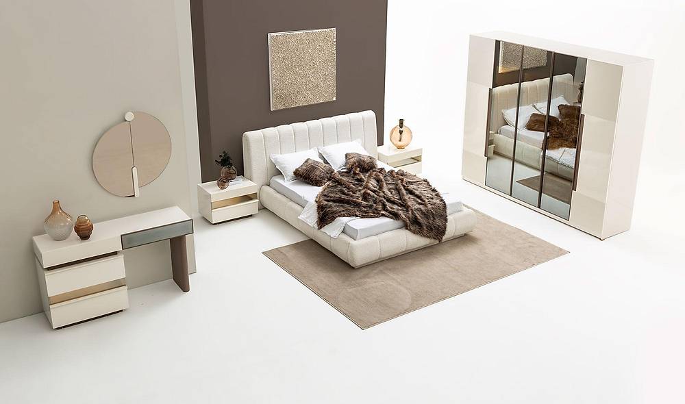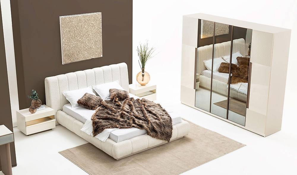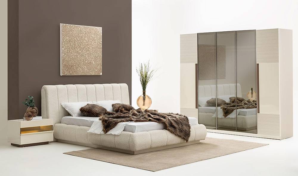French Door Art slaapkamermeubelset in crème: een complete combinatie van bed en kast met slimme opbergruimte. Ideaal als je zoekt naar een stijlvolle, functionele oplossing voor een opgeruimde slaapkamer.