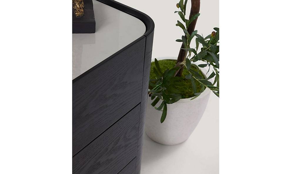 - Tijdloze elegantie: het diepzwarte design met een voorpaneel van MDF en natuurlijke keramiekdetails geeft uw eetkamer een luxe uitstraling zonder opzichtigheid.