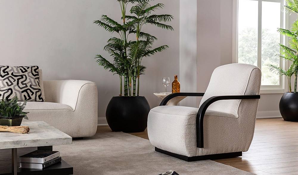 - Verhoogt stijl met moderne lijnen en elegante bouclé-stof