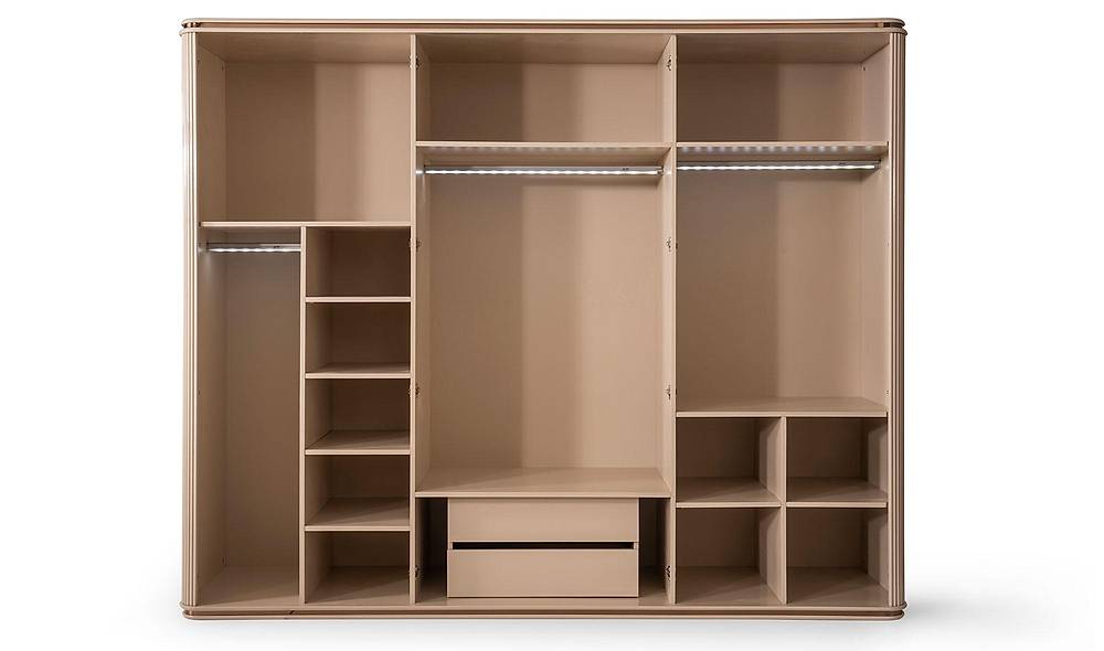 - Kastinterieur: voorzien van hanggedeelte, planken en lades.