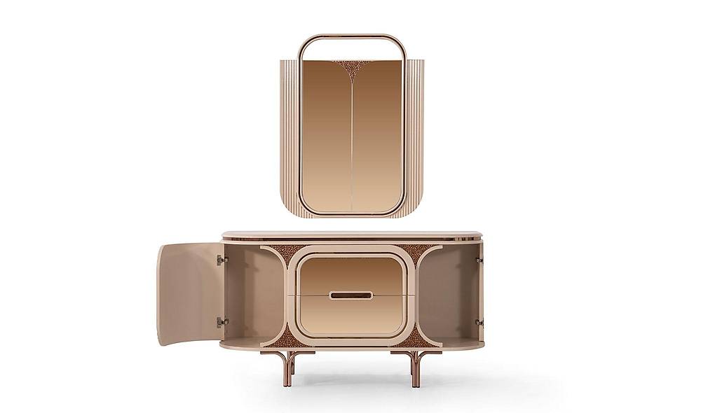 - Spiegel: bronzen spiegel op de frontdeuren voor extra elegantie.