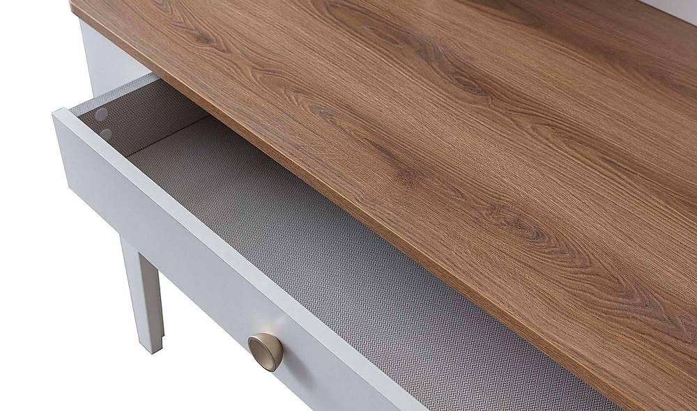 - Directe meerwaarde: een compact, slim ontworpen werkmeubel van 120 cm breed dat strak oogt en veel mogelijkheden biedt voor thuiswerken, studeren of als stijlvolle opbergoplossing in de hal.
