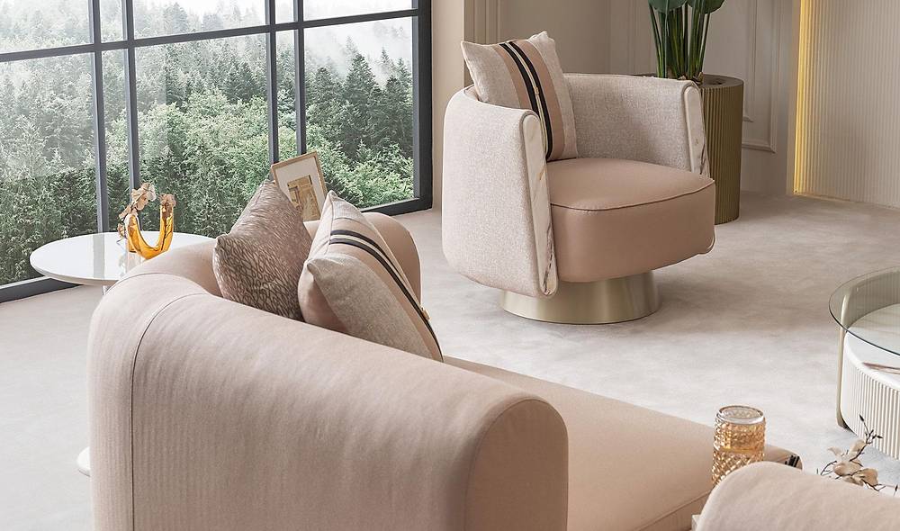 - Voel zacht textuurweefsel voor comfortabele, uitnodigende zit.