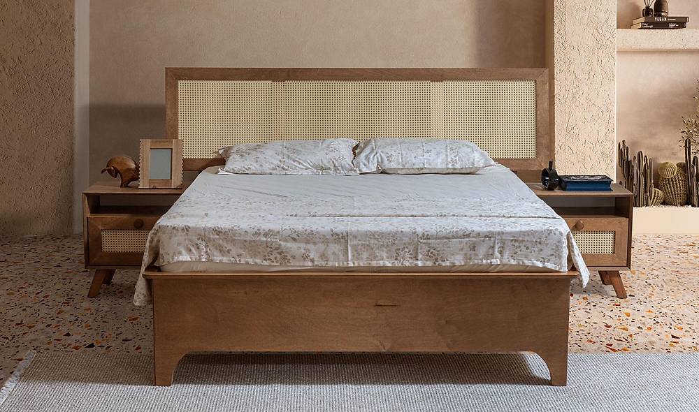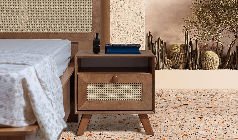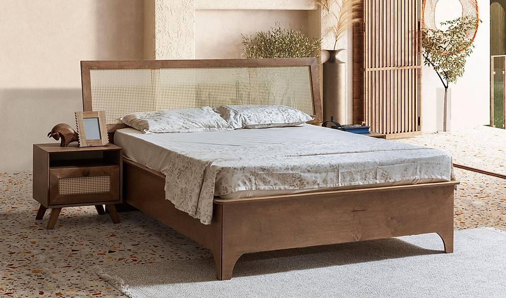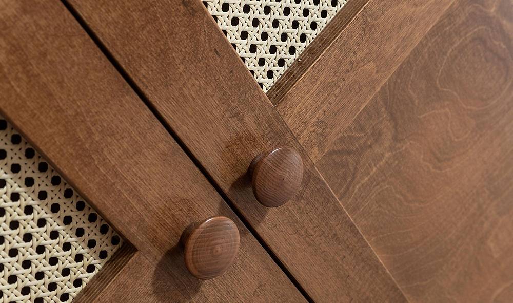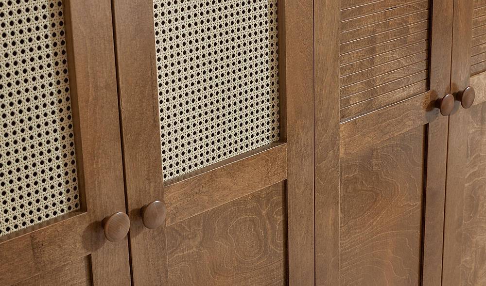 - Luxueuze uitstraling: de walnootkleur en het PVC-geweven rattan (hazeran) hoofdtelepaneel geven een warme, natuurlijke en moderne look die bij veel interieurs past.