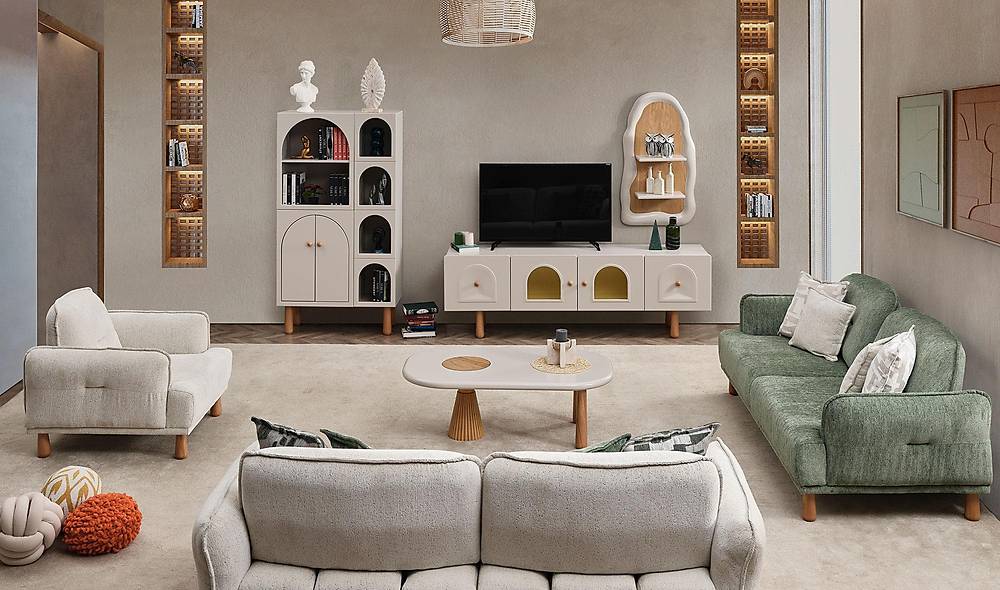 - Mogelijkheid om extra elementen toe te voegen: de salontafel is optioneel verkrijgbaar en niet bij de prijs inbegrepen, zodat u uw interieur kunt uitbreiden naar eigen wens.