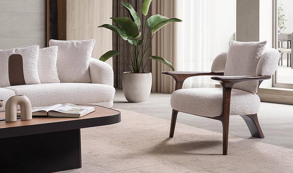 - Luxe gevoel: zachte, textuurrijke stof die uitnodigt om te zitten en aan te raken — aangenaam in elk seizoen.