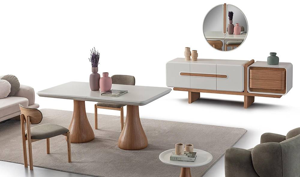 | Setinhoud | Dressoir met spiegel, eetkamertafel, 6 stoelen |