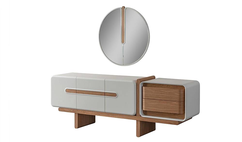 - Dressoir met spiegel (3 deuren + lades)